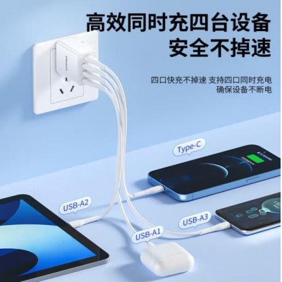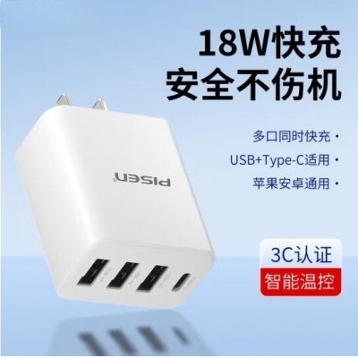 18W充电头3.6A四口USB充电器插头兼容2.4A多口孔快充适用于苹果华为小米三星OPPO安卓手机平板通用装